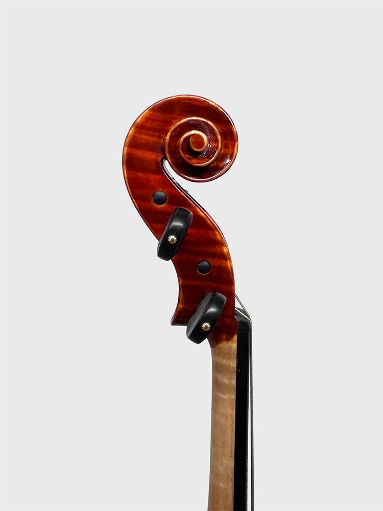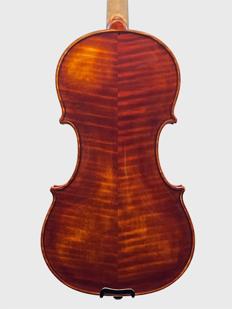 Crafted from premium European tonewoods, this violin combines refined material selection with traditional craftsmanship. The top is made from fine Italian spruce, prized for its excellent resonance and clarity, while the back, constructed in two pieces, features beautifully flamed Bosnian maple, offering both strength and visual elegance. The instrument is finished with an oil-based varnish in an antique style, carefully applied to enhance its depth of color and character while allowing the wood to vibrate freely. The result is a violin with a warm, balanced tone and a timeless aesthetic, suited for discerning musicians seeking both performance and beauty.